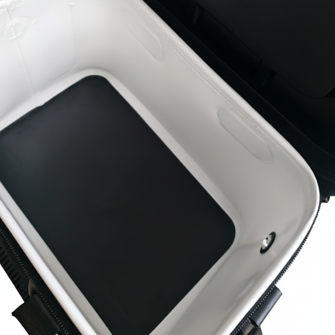 Diseño robusto y práctico, cuenta con una tapa reforzada, interior térmico fácil de limpiar, además de prácticos porta accesorios y soportes laterales que facilitan la organización.