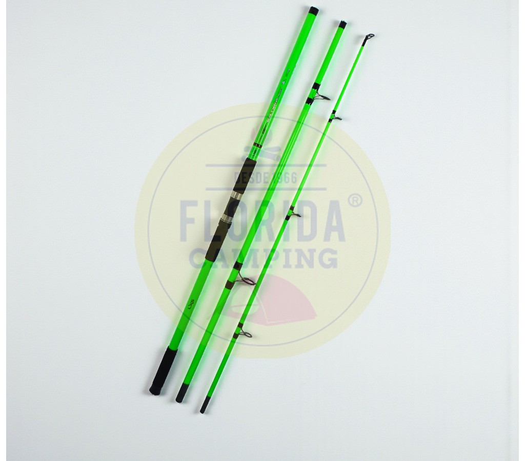 Caña de fibra de vidrio en 3 tramos para lanzar y ser utilizada con reel frontal.