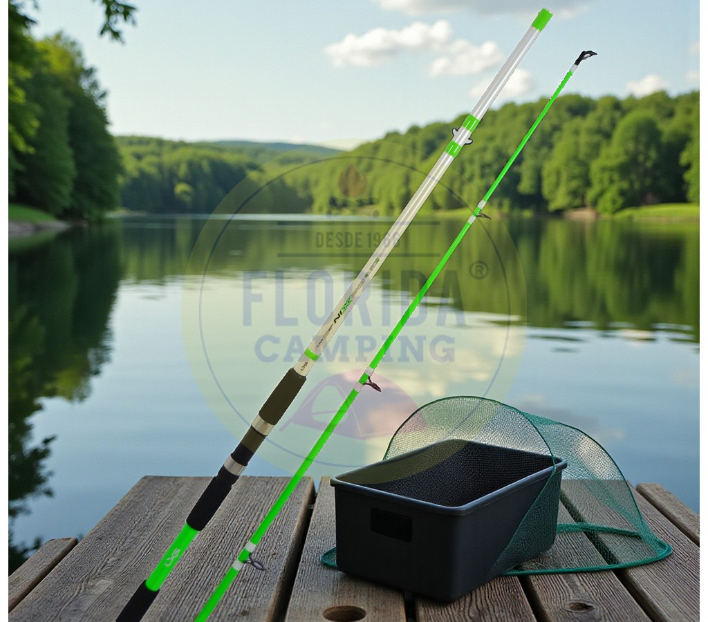 Caña para pesca variada de río o laguna, en dos tramos para facilitar su transporte.