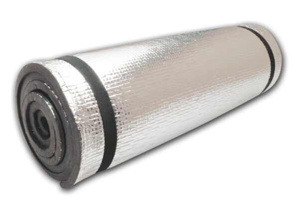 Colchoneta aislante de goma eva con capa de nylon aluminizado.
