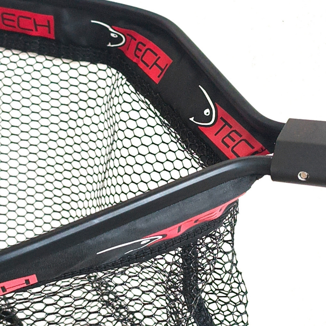 red de nylon recubierta en goma que protege a los peces y mango de aluminio resistente.